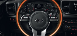 - Чёрная эмблема "SPORTAGE", расположенная по центру дверцы багажного отсека